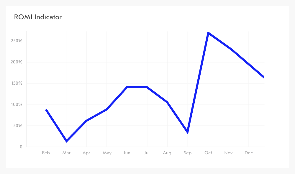 We constantly analyze the ROMI metric by regions and products, excluding those where the metric is below 100%.